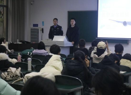 最后,符警官全面展开了对航空安全知识的普及。他从空防安全、乘机注意事项以及热点问题解答三大方面入手,结合生动的图文资料与视频片段,重现了几起典型的航空事故现场,并深入剖析了事故原因。这一教学方式不仅使同学们直观而深刻地理解了严格遵守航空安全规定的重要性,也极大地增强了知识的可接受性,激发了同学们对航空安全的深刻认识与高度重视。