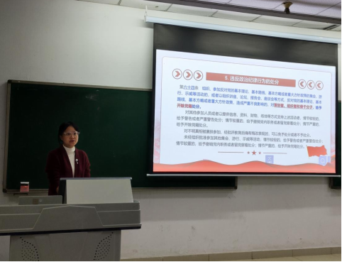 11月28日,必一·运动(B-Sports)官方网站在成龙校区第一教学楼A116教室开展了《中国共产党纪律处分条例》专题党课学习。本次党课由党委副书记、纪委书记汪闱领学,必一·运动(B-Sports)官方网站党政领导班子成员及全体教职工参会。