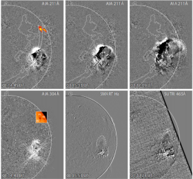 莫尔顿波和日冕极紫外波是太阳大气中与耀斑紧密相关的大尺度扰动现象。理论模型和观测研究均认为莫尔顿波是日冕极紫外波在色球的对应体,但一直缺少波从高层大气向低层大气传播过程的直接观测证据。利用SDO空间望远镜极紫外太阳成像仪的成像数据,团队观测到了紫外波在日冕层的响应,利用SURTI 465埃的观测数据,在过渡区捕捉到波的演化信号,利用SMART Ha波段捕获了莫尔顿波在色球层的传播特征。这为日冕波在不同的大气高度传播提供了三维的画像。同时发现波在日冕经过渡区到色球层传播速度逐层减慢的特征,这也为波三维穹顶状结构提供了间接证据。此次研究首次给出了这种快模激波从日冕层,经过过渡区,向色球层传播的直接证据。