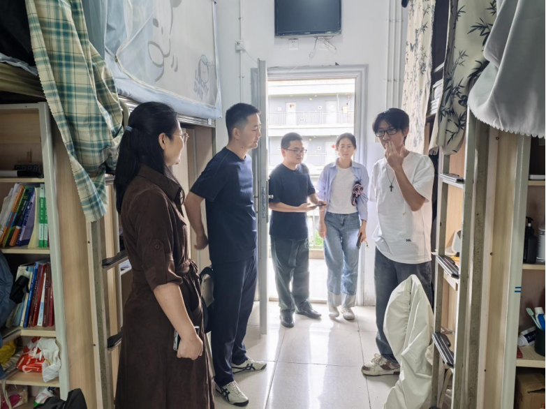 本次检查重点围绕用电安全、消防隐患、疏散通道等关键环节。钟书记叮嘱同学们:“安全是底线,更是红线”,要坚决杜绝使用违规电器、私拉电线等行为,牢固树立“人人讲安全、事事为安全”的责任意识。对于发现的物品堆放杂乱等问题现场提出整改意见,要求同学们严格遵守宿舍管理规定,切实提高自我防护能力。
